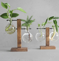 Bring a sense of calm and character to your interior with this Glass Plant Terrarium , designed to blend vintage charm with modern simplicity. Featuring a mini bulb-shaped glass vase balanced on a handcrafted solid wood stand , its design is inspired by the harmony of a Libra scale — light, elegant and perfectly balanced.