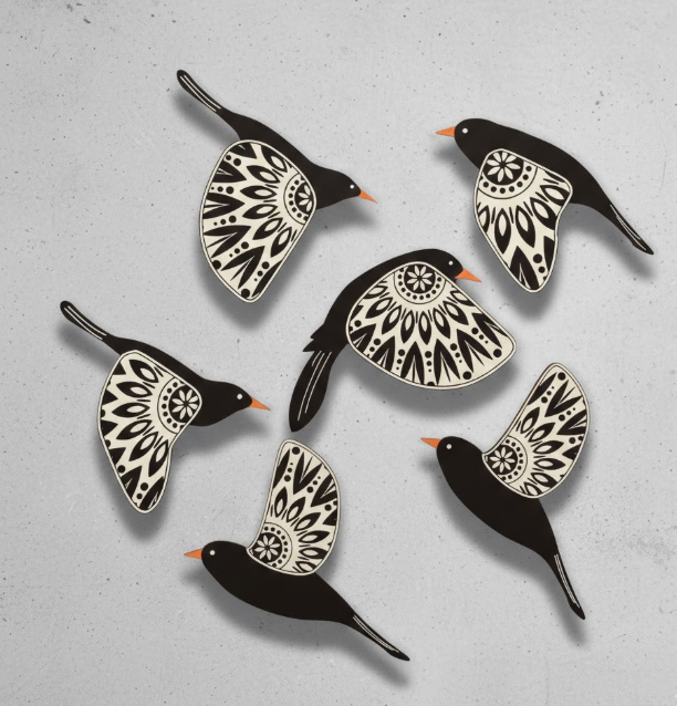 Product Name: Wooden Black Bird Wall Art (Set of 5)